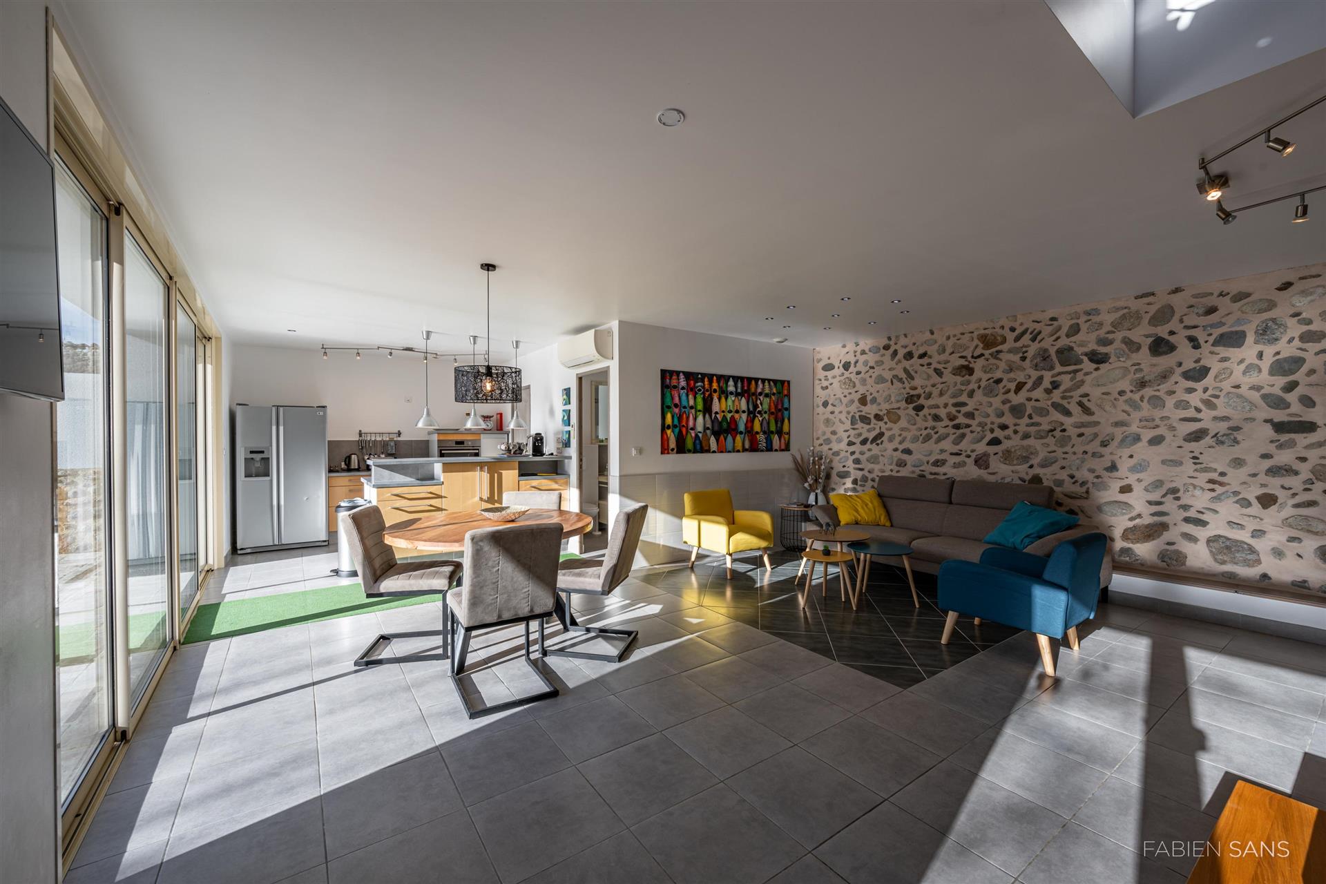 The holiday home has its own living room, kitchen, storage room, 2 bedrooms, 2 bathrooms and its own saltwater pool. The property is air-conditioned and has a private terrace.