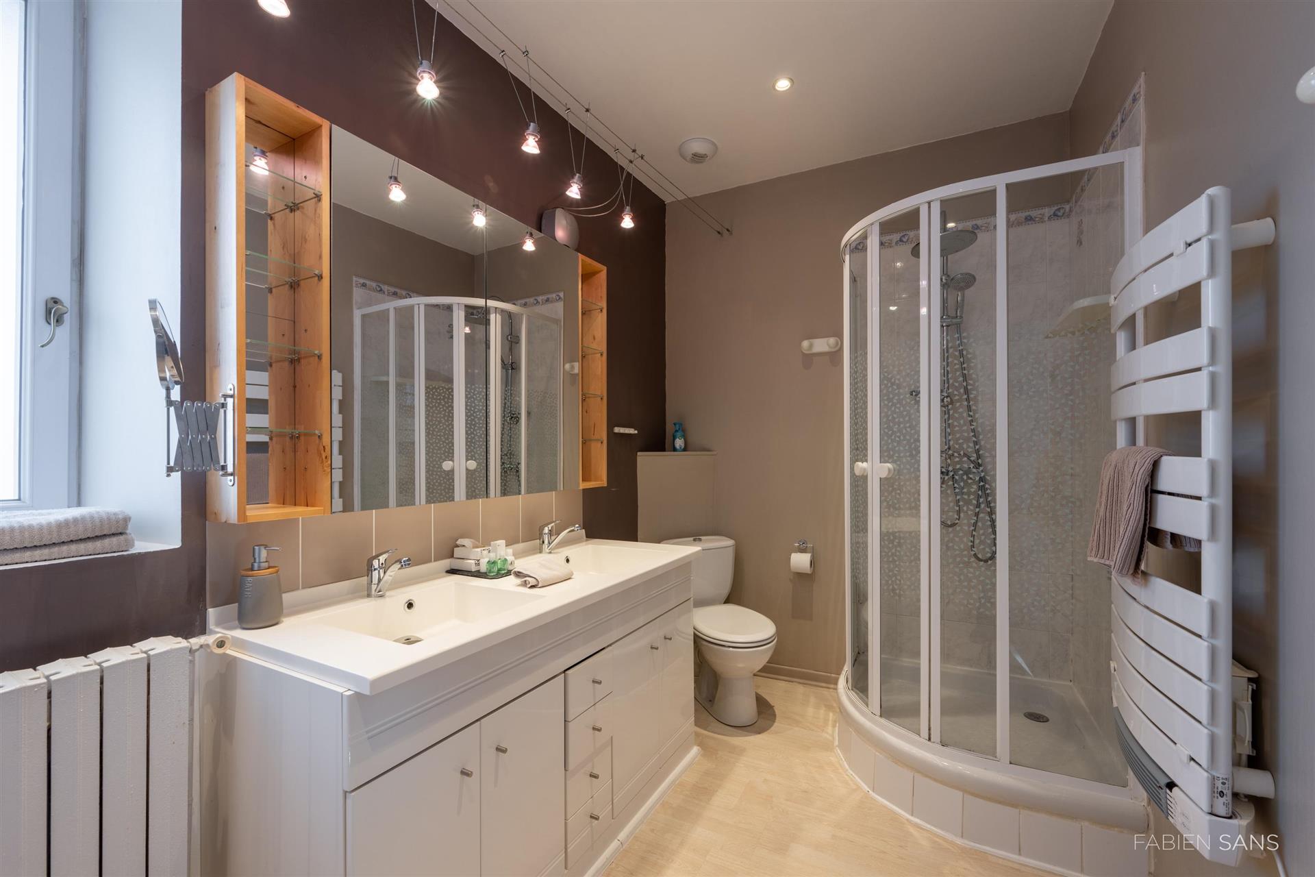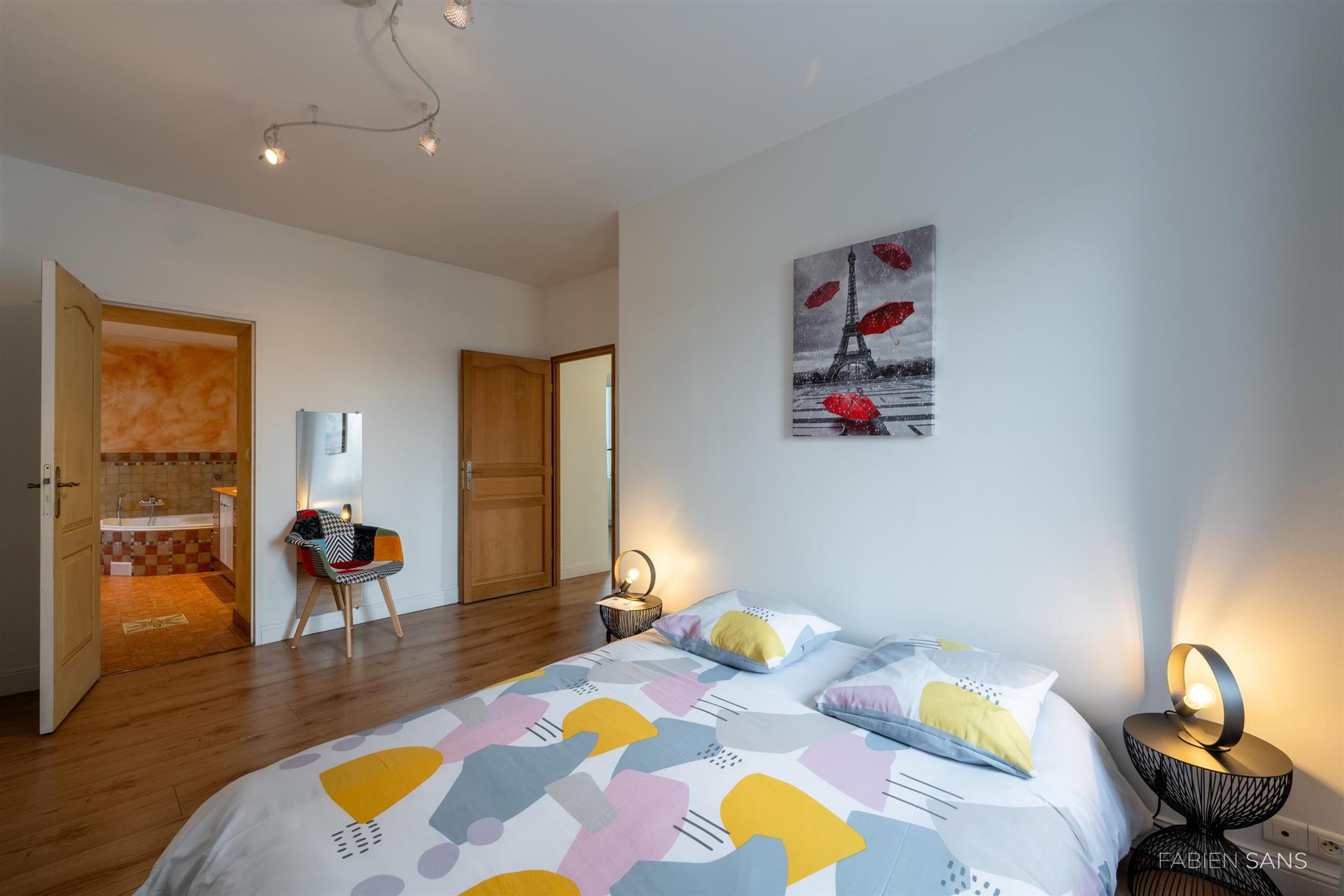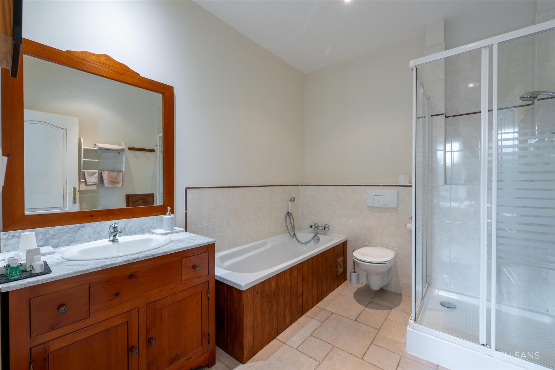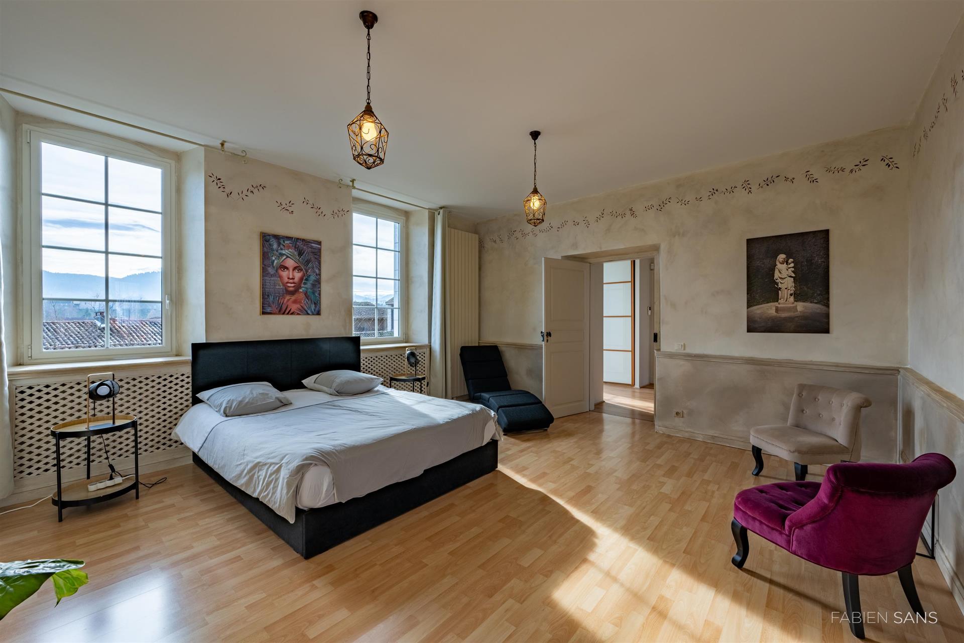 On the first floor there are three B&B bedrooms. Two rooms have a toilet, bathroom and double beds. The four-person room has two bedrooms, a private toilet and bathroom with jacuzzi! The rooms feature large windows that overlook the beautiful Ausson countryside. In the barn conversion you will find two more bedrooms with a gym/office, large bathroom with double bath, double shower and dressing room. These spaces are now in private use but can also be converted into luxury B&B rooms or Gîtes.