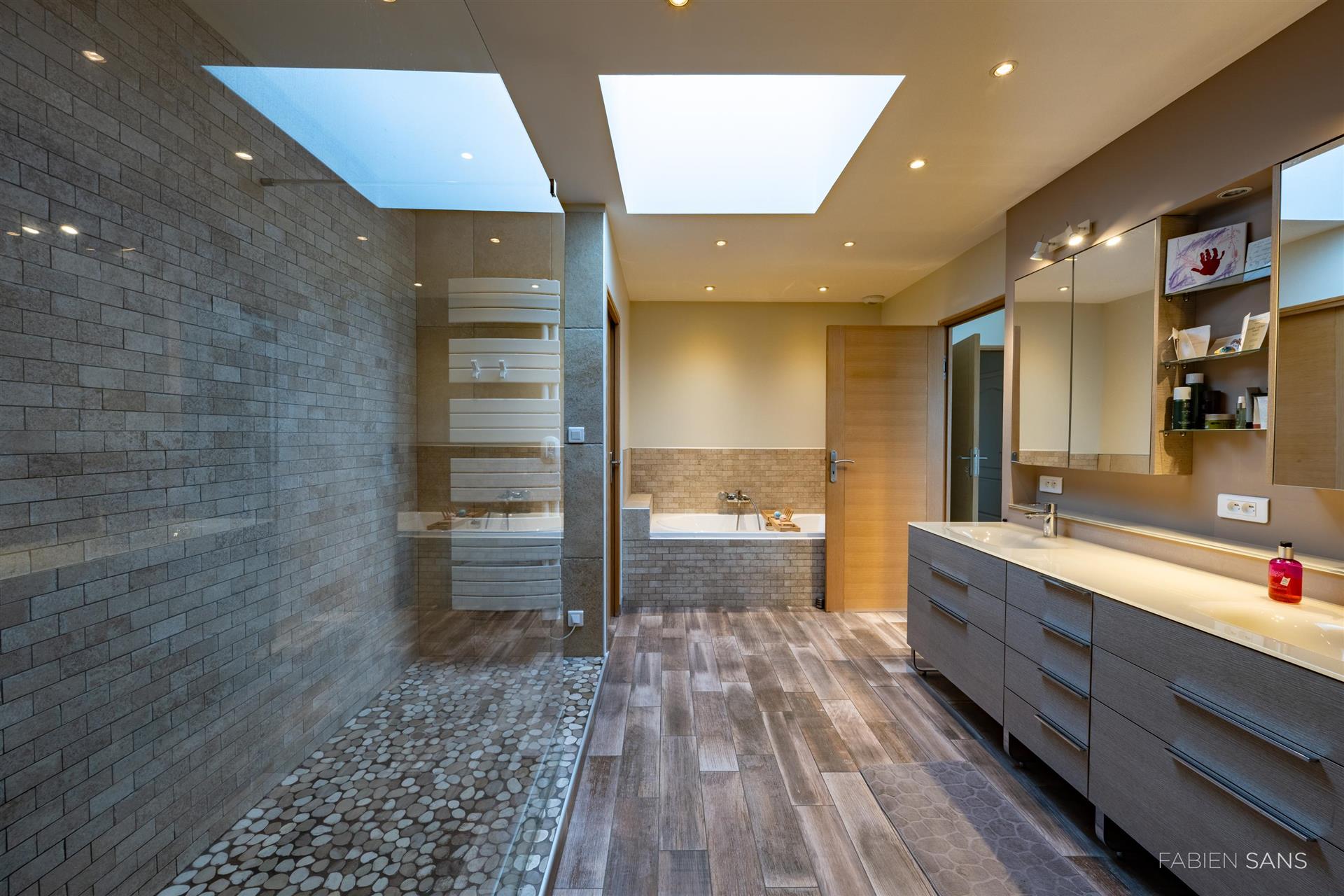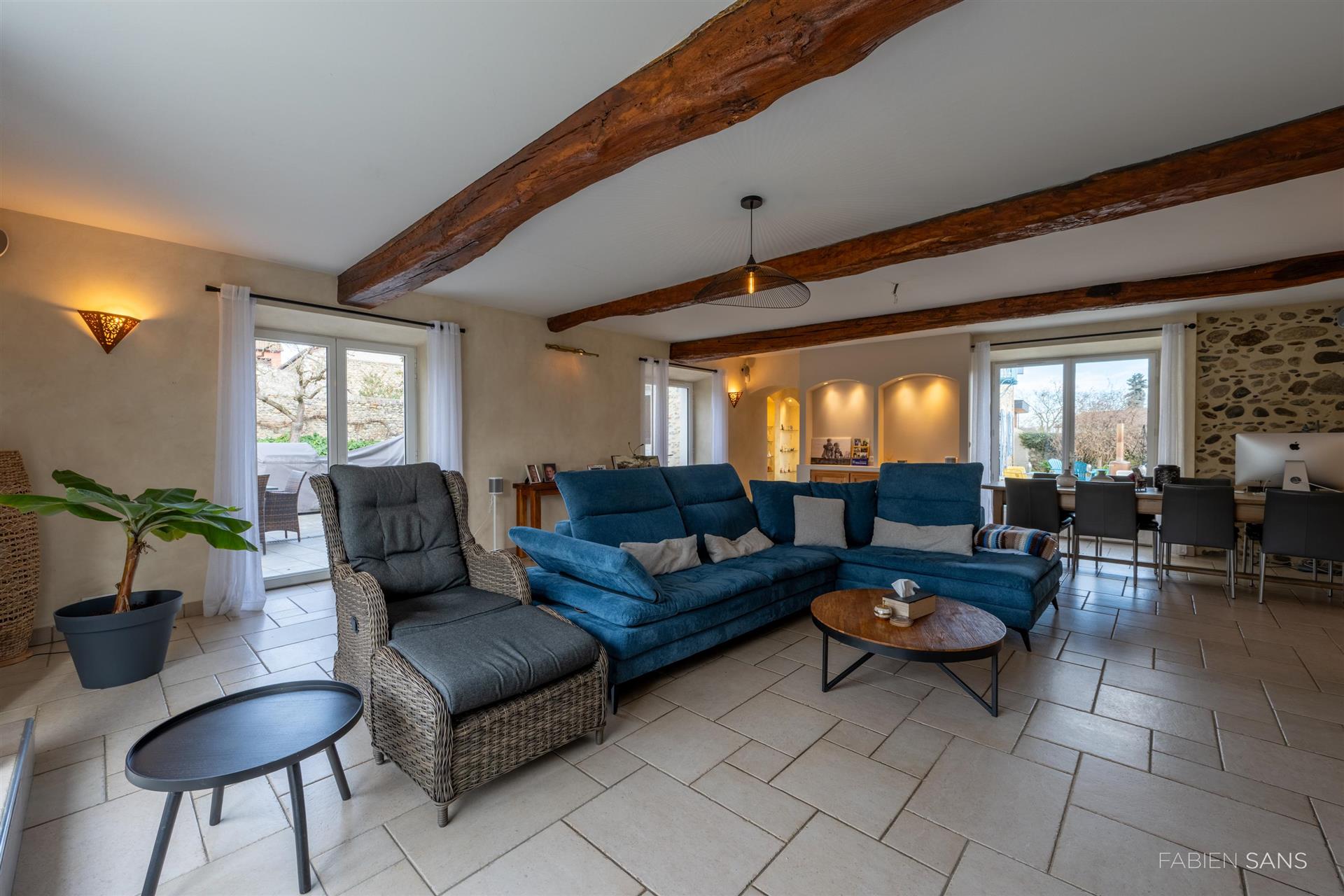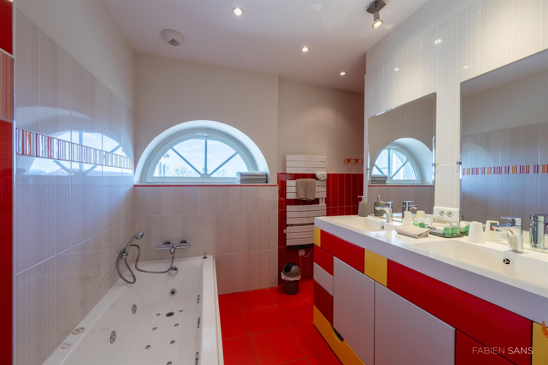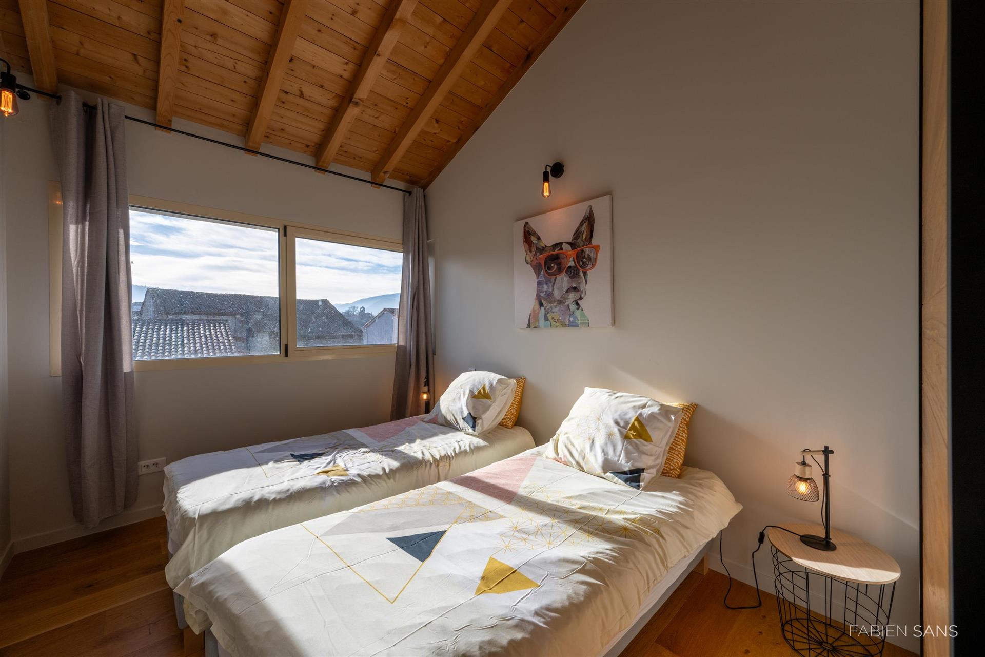 On the first floor there are three B&B bedrooms. Two rooms have a toilet, bathroom and double beds. The four-person room has two bedrooms, a private toilet and bathroom with jacuzzi! The rooms feature large windows that overlook the beautiful Ausson countryside. In the barn conversion you will find two more bedrooms with a gym/office, large bathroom with double bath, double shower and dressing room. These spaces are now in private use but can also be converted into luxury B&B rooms or Gîtes.