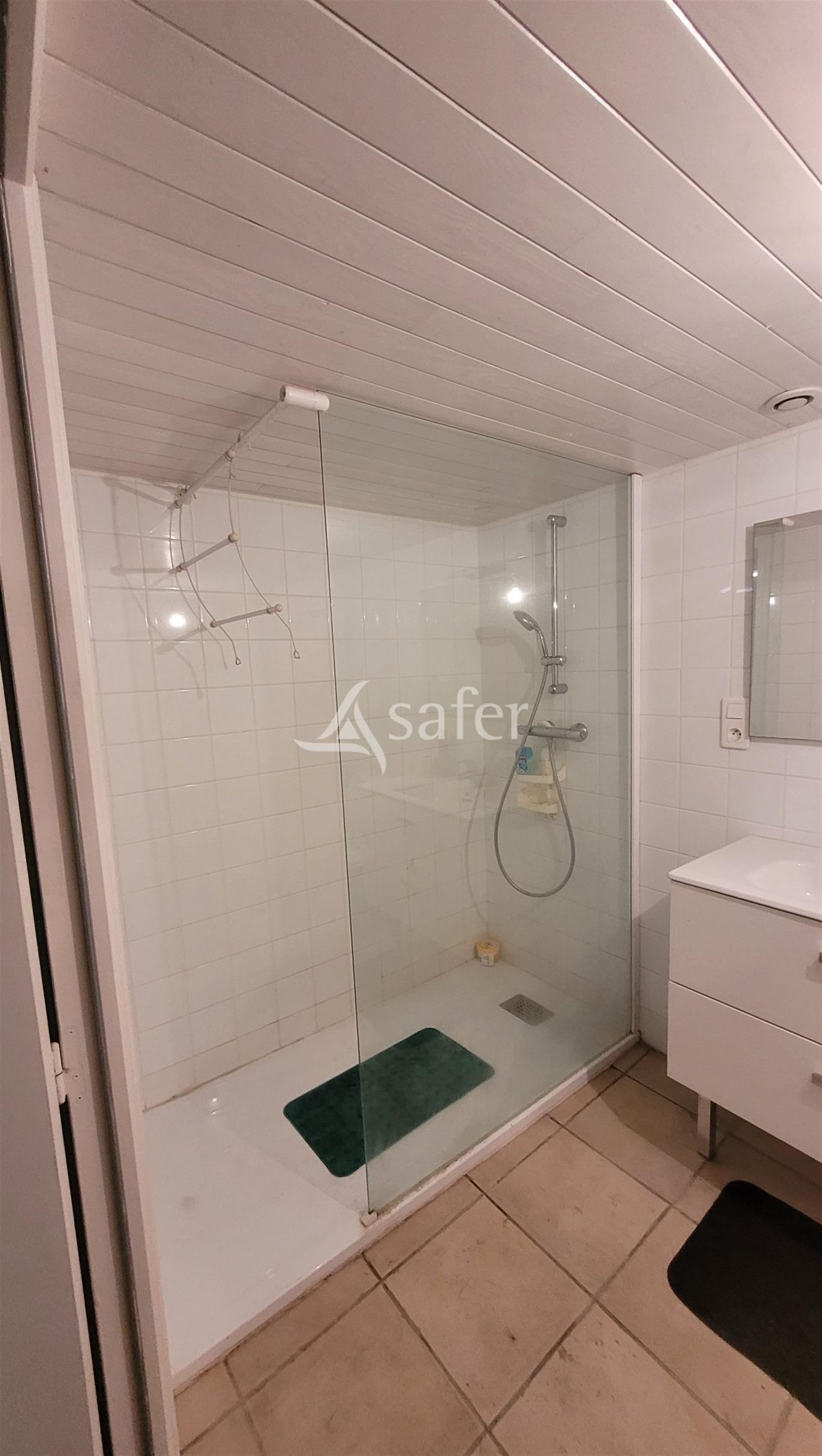 une véranda ouvrant sur une cuisine équipée et un salon. Au première étage trois chambres et une salle d'eau. Au rez-de-chaussée un garage de 40m² environ également avec un accès privatif une buanderie, une salle d'eau et une chambre.