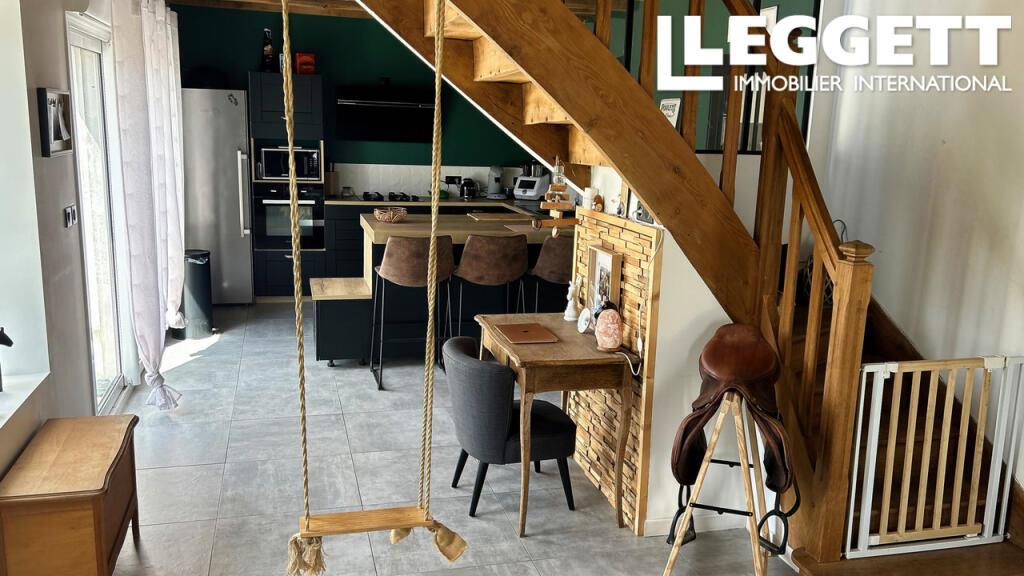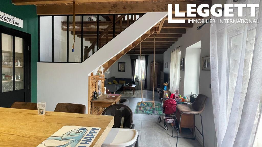 A39844jbr87 - Welcome to this well maintained 4-bedroom home in the popular village of Mezieres-sur-Issoire, within walking distance to local facilities, such as post office, chemist, bank, grocery/bar, bakery, hairdressers and doctor's surgery. Limoges Airport is 48 km away and the larger town of Bellac, with supermarkets, hospital, theatre etc and main-line train station is 12 km. The layout is as ound Floor:As you enter, you'll be greeted by a fully fitted kitchen (15 m²) which flows effortlessly into the cozy salon (22 m²) and the inviting dining area (20 m²), which boasts a nook perfect for a home office setup. A Wc and a practical utility room (20 m²) complete the ground floor.First Floor:Head upstairs to the first floor, where you'll find a landing leading to three spacious bedrooms. The first two bedrooms (13 m² and 15 m²) are bright and comfortable, while the master bedroom (19 m²) features a dressing area. The bathroom (12 m²) is equipped with a modern shower, double basins, a corner bath and a connected towel dryer, providing a serene space for relaxation. A second suspended Wc adds to the convenience of this floor.Second Floor: Venture to the second floor and discover a delightful versatile space 15 m² (under eaves) games room/fourth bedroom.The property is set on spacious grounds of 5,031 m², offering ample outdoor space for gardening, leisure activities or even the future installation of a swimming pool. There is enough land for a couple of horses or other animals.The adjoining 250 m² barn offers various possibilities, such as expanding the existing living space or creating a separate rental unit. It includes a garage, a stable and a separate insulated room (22 m²) equipped with electrical systems and an inverter to manage the 8 solar panels installed on the roof. Enjoy the dual benefits of energy efficiency and the ability to generate electricity for your own use and for resale.BrochuresBrochure 1