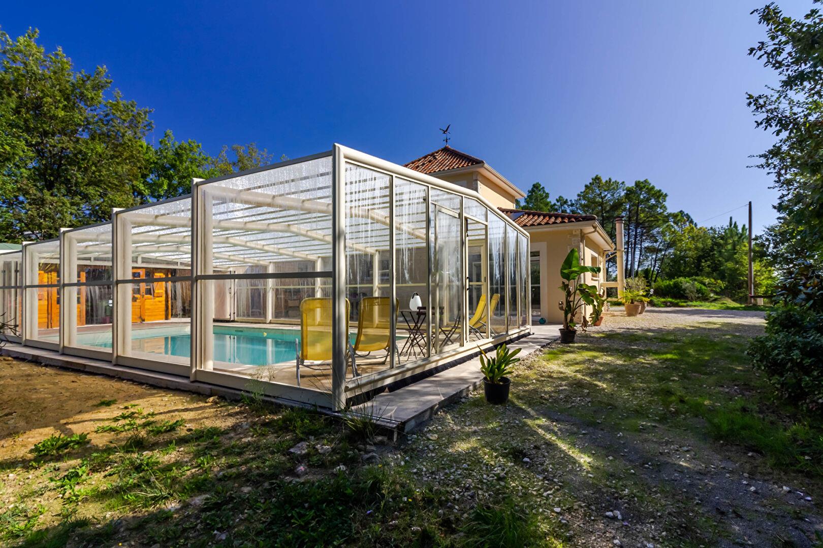 A 10 mn de Sarlat, en pleine nature, maison contemporaine, construite en 2020, 130 m² habitable, composée d'une entrée, grande pièce de vie donnant sur la piscine, suite parentale avec salle d'eau/Wc, 3 chambres, une salle d'eau/bains. Cellier. Garage. Abri voiture. La piscine est chauffée et l'abri télescopique permet de se baigner tout au long de l'année. Poolhouse. Le tout sur un terrain de 9900 m² avec un grand espace boisé et constructible. Sylvia Planes (Ei) Agent Commercial - Numéro Rsac : - .