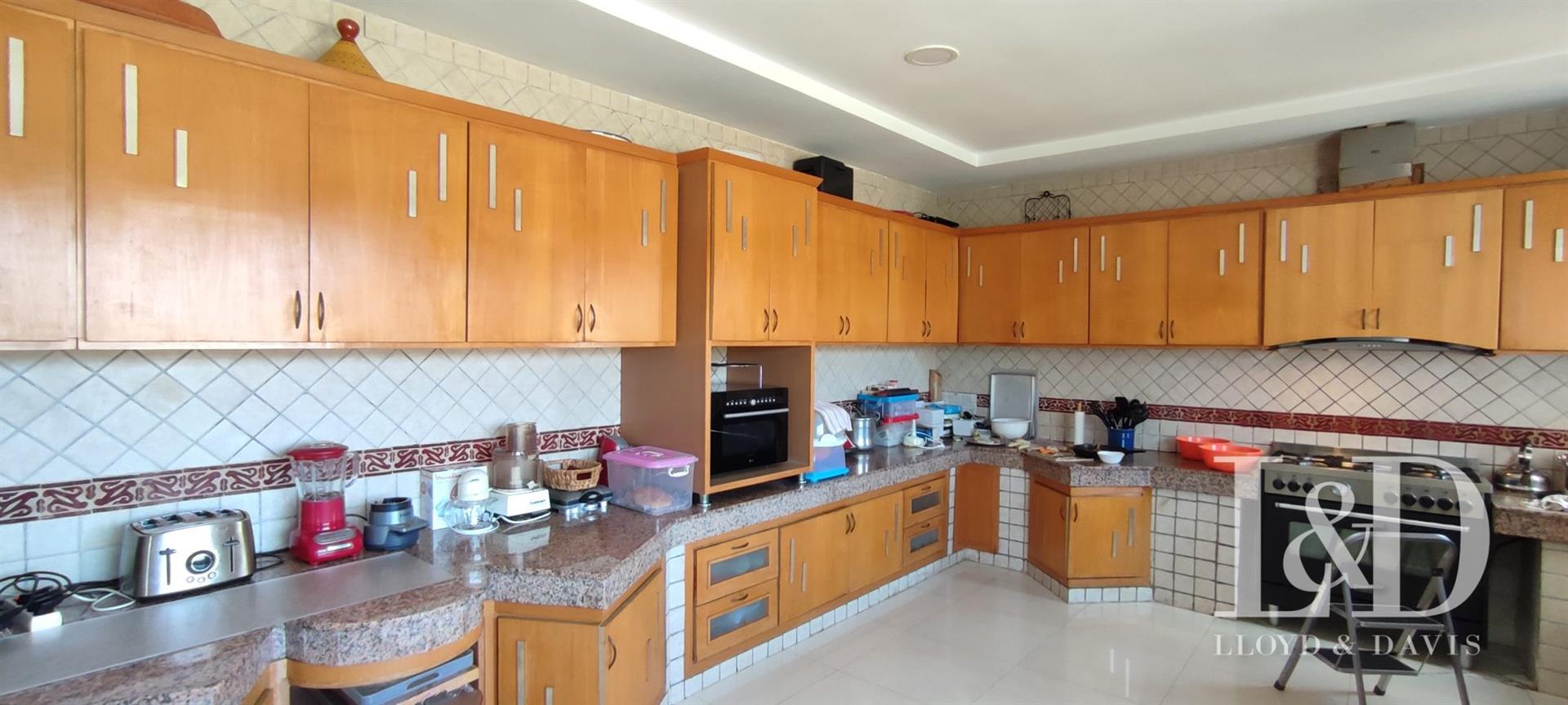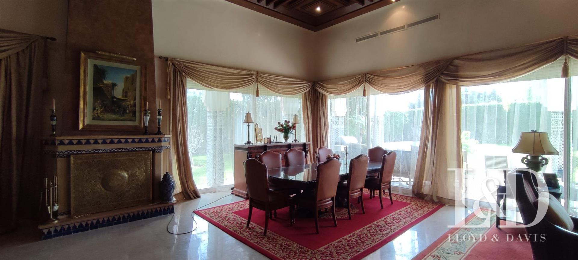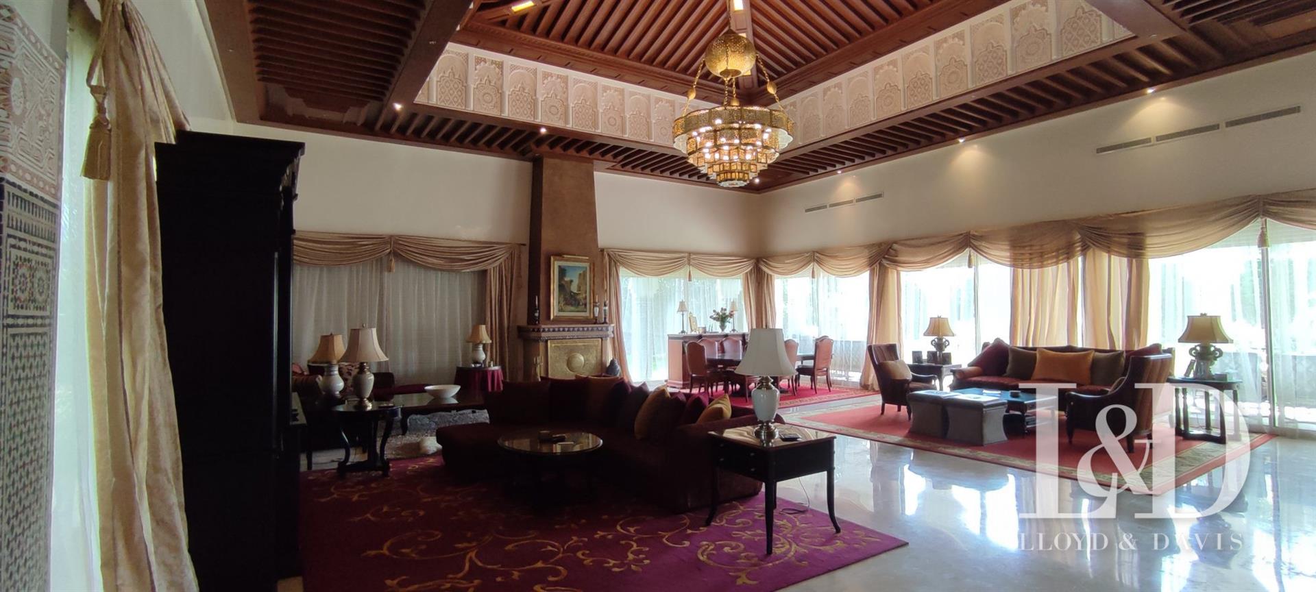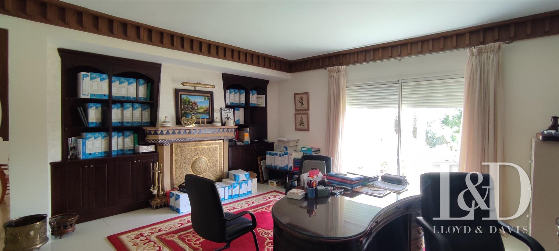 Offrez-Vous un bijou architectural au cœur de Souissi, à proximité du champ de courses. Cette magnifique villa de style oriental, de plain-pied, se distingue par ses volumes généreux, ses finitions raffinées et son ambiance élégante.Caractéristiques principales :Surface terrain : 1 720 m²Surface bâtie : 800 m²Orientation : Plein sudArchitecture : Plafonds sculptés, zellige, marbre, et éléments traditionnels d’exceptionDisposition :Rez-de-chaussée :Vaste réception avec cheminée et hauteur sous plafond de 4,50 mSalon marocain authentiqueSalle d’eau invitésEntresol :Grande cuisine équipéeSalle à manger convivialeBureau indépendantMaster Suite avec dressing spacieux et salle de bain privativeSalle d’eau invitésRez-de-jardin :3 Suites juniors avec dressing et salle de bainSalon Tv ou détenteSalle de jeuxSpa privé avec hammam et jacuzziBuanderie, chambre de service avec salle de bainCour anglaise apportant lumière et fraîcheurExtérieur :Piscine privéeGarage fermé pour 3 voituresLoge gardienJardin avec arrosage automatiquePanneaux solaires et climatisation Split