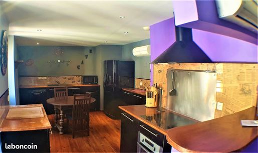 Dans une petite copro au cœur du village, je vous propose au 2ème étage un T6 de 115m² très lumineux. L’Appartement est rénové avec goût, et proche de toutes les commodités (commerces, collège/écoles, cure, piscine, cinéma, …). Il se compose: Au R1: une entrée avec débarras. Au R2: une grande Salle de Bains (11m²) (douche et baignoire), avec machine à laver le linge, un Wc, une cuisine (24m²) complétement équipée (deux éviers, plaque vitrocéramique, hotte, four, four micro-ondes, frigo américain, lave vaisselle) avec un bar américain, un séjour (28m²) avec table et chaises, canapé, meubles de rangement, Tv. Au R3: une suite parentale (12m²), avec lits électriques (140x200), placards, Tv, douche et meuble de SDBs, un Wc avec lavabo, trois chambres (13m²,10m², 10m²) dont une avec bureau, lits superposés (90x190) et placards, un bureau (12m²) avec placards, L’appartement est équipé d’une climatisation réversible, d’une Vmc privative et de radiateurs à inertie, les menuiseries sont en double vitrage, avec volets roulants électriques. L’Appartement dispose d’une cave privative de 17m² L’appartement possède un interphone et la fibre. Le loyer est de 709 euros, plus 50 euros de charge (électricité commun, eau froide, et taxe d’enlèvement des ordures ménagères).