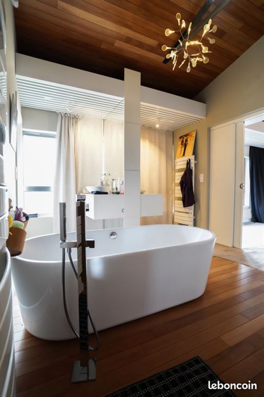 - 1er étage : Grand lit double 140x200 (sommier, matelas, Oreillers, et toutes literies propres fournis), deux Tables de nuit avec ses lampes de chevets, bureau, grande armoire dressing avec miroir. Pour la salle d’eau : Large douche à l’Italienne, meuble vasque miroir et ses rangements, sèche-serviettes électrique.