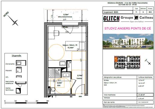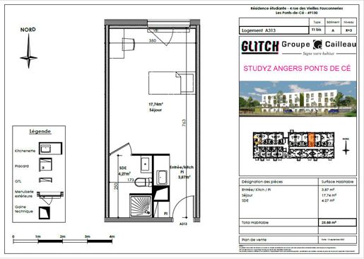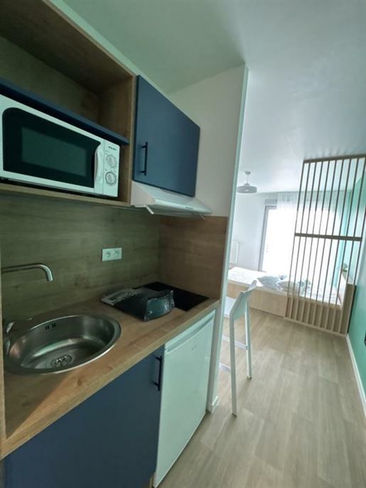 À moins de 10 minutes du centre-ville d'Angers, découvrez ce T1 bis meublé de 25.88 m², situé au troisième étage de la résidence étudiante neuve Stüdyz Les Ponts-de-Cé. Pensée pour le confort des étudiants, cette résidence allie cadre de vie agréable, services para-hôteliers et sécurité. Le logement : - Pièce de vie lumineuse avec coin nuit, lit, bureau, chaise, table, placard et rangements. - Kitchenette équipée : plaques vitrocéramique, hotte, réfrigérateur, micro-ondes, meubles de rangement. - Salle d'eau moderne : douche, meuble vasque, miroir lumineux, Wc suspendu, sèche-serviettes. Résidence Stüdyz - bien plus qu'un logement : - Services para-hôteliers à la carte : ménage sur demande, petit-déjeuner, location de linge de lit et de toilette. - Espaces communs conviviaux : salle de sport, coworking, détente (baby-foot, billard), salle commune. - Services pratiques : laverie, local vélos sécurisé, internet haut débit inclus. - Sécurité renforcée : résidence clôturée, digicode, Vigik, gestionnaire sur place. - Confort énergétique : chauffage collectif gaz, eau chaude partiellement solaire. Un emplacement stratégique : - Quartier verdoyant et dynamique des Ponts-de-Cé. - Transports directs vers les campus (Esa, Esmae, Irss, Université Catholique) - Bus Ligne 3 à 5 min. - Commodités à proximité : supermarché, boulangerie, restaurants, médiathèque, loisirs nature (Loire à Vélo, canoë, piscine..). - À 15 min de la Gare d'Angers St-Laud et accès rapide A87 / A11. Ne tardez pas ! Ce logement clé en main, aux prestations de qualité et aux services flexibles, n'attend plus que vous. Yzy Gestion Informations sur les risques :