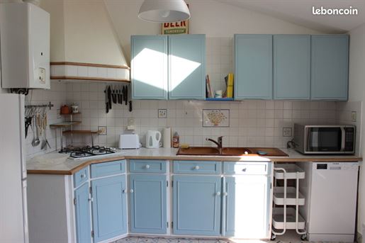 - Au Rez-de-chaussée la pièce de vie ainsi que sa cuisine ouverte entièrement équipée, incorporée. Sous l'escalier, une buanderie avec machine à laver.