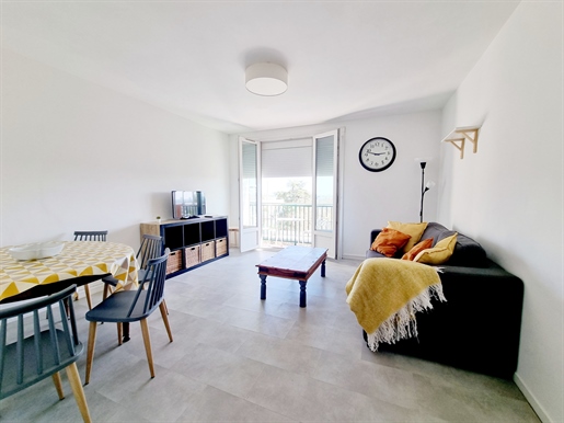 L'appartement s'ouvre sur une entrée (avec placards) desservant un séjour lumineux avec balcon, composé d'un espace salon (aménagé avec canapé et table basse) et un espace salle à manger (avec table et 6 chaises).