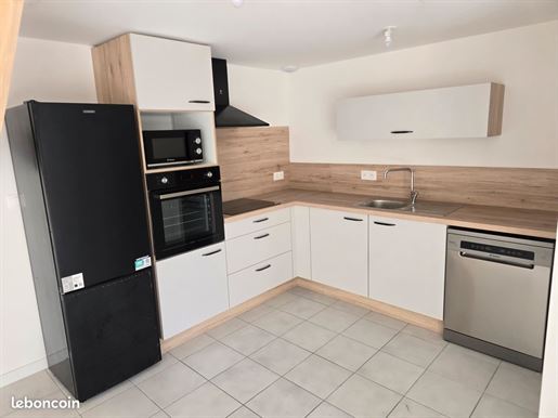 La cuisine est entièrement équipée : four, plaques de cuisson, hotte, réfrigérateur avec congélateur, micro-ondes, lave-vaisselle, tous ustensiles et petit électroménager nécessaire. Nombreux rangements.